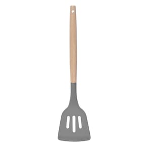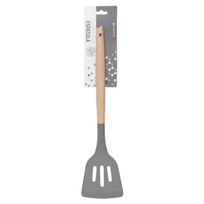 A Espátula em Silicone e cabo de Bambu traz estabilidade e é resistente ao calor. Conta com a parte de silicone vazada em seu interior, facilitando com que o óleo ou a água escorra. É perfeita para qualquer preparo, não danifica e não risca.