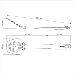 Quem adora cozinhar sabe que utensílios práticos sempre ajudam a obter o melhor resultado. E a Espátula Tramontina Verano com Bojo em Nylon e Cabo de Polipropileno com Mini Ralador Ônix é perfeita para você. Ela possui um mini ralador e serrilha no lado esquerdo para cortes suaves, seu bojo é feito em nylon e possui um moderno cabo ergonômico. Uma peça resistente até 180º C de temperatura e que pode ir à máquina de lavar louças. Preparar e servir suas receitas ficou ainda mais prático e fácil! Orientações Espátula de nylon, que resiste até uma temperatura de 180 °C. Cabo de polipropileno com furo passante possibilitando que seja pendurado na sua cozinha. Utensílio ideal para uso em panelas com revestimentos antiaderentes e cerâmicos, pois não danifica o produto. Pode ir à máquina de lavar louças facilitando seu dia a dia. Características Gerais EAN13 7891112262683 DUN14 17891112262680 NCM 3924.10.00 Peso Líquido 0,0950 kg. Peso Bruto 0,1000 kg. Metragem 0,001951 m³. Dimensões Embalagem (Compr. X Larg. X Alt.) 86x 57x 398 mm. Dimensões Produto (Compr. X Larg. X Alt.) 348x 86x 55 mm. Cor 1 333F48 Hexa Cor 2 707372 Hexa Observações Antes da primeira utilização, lave bem a peça e seque-a. Para maior durabilidade do produto recomenda-se secar bem antes de guardar, mesmo após lavagem em máquina. Para descarte do produto e embalagem siga as orientações de reciclagem vigentes.