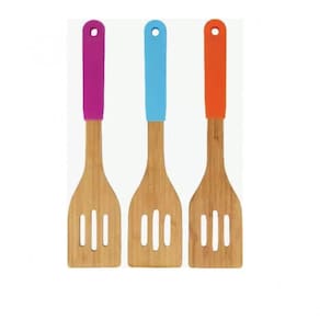 Espatula Vazada De Bambu 30 Cm Com Cabo Silicone - Wincy