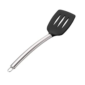Espatula Vazada De Silicone Preto Cabo Aço Inox Uny Home Aço inox e silicone cada Quer um produto com maior durabilidade e eficiência para o seu dia a dia Esta espatula feita em silicone de extrema qualidade que irá transformar o jeito que você prepara seus alimentos. Super fácil de usar e realmente muito bonito este item vai fazer a diferença na sua cozinha Peça que une a elegância com a utilidade, com seu acabamento na cor preta esta espatula vazada foi feita para quem busca uma cozinha mais linda, por ser feito de silicone de ótima qualidade, esse utensílio vai durar por muito tempo em sua cozinha, ele também ajuda a evitar acidentes durante o preparo Medidas: 35 cm Peso aprox. 300g Ean: 7899670809104