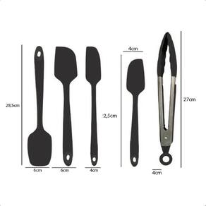 O Kit Uten Silicone Espátula Pegador Confeitaria 5 Pçs - Preto é a escolha perfeita para quem busca qualidade e praticidade na cozinha. Composto por uma combinação de silicone e aço inox, esses utensílios são duráveis e ideais para o dia a dia.