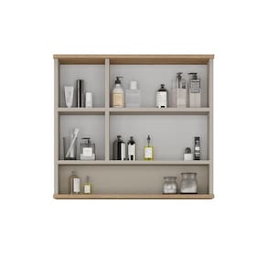 Organização e beleza em um só produto! Esta espelheira moderna é feita em MDF de 18mm e possui acabamento de fita de borda em PVC, que aumenta a proteção e o charme do móvel. Com nichos práticos, você terá mais espaço para organizar seus itens de uso diário, deixando tudo sempre à mão. O espelho amplia o ambiente e traz mais luminosidade, tornando o banheiro ainda mais aconchegante e funcional.