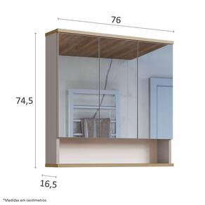 Material: MDF 18mm, Fita de borda em PVC, Dobradiça com amortecimento, Espelho aplicado na chapa com fita dupla face e silicone especial. Acompanha manual de montagem. COR: NUDE/CARVALHO