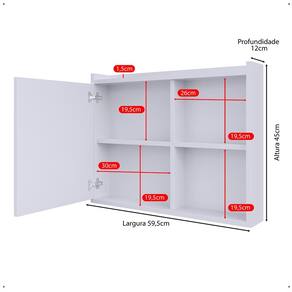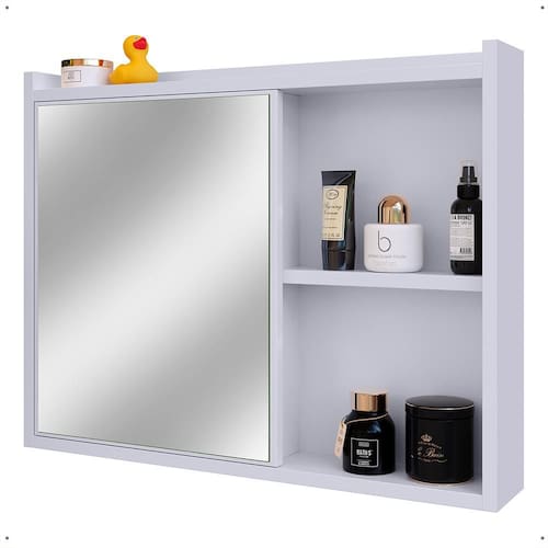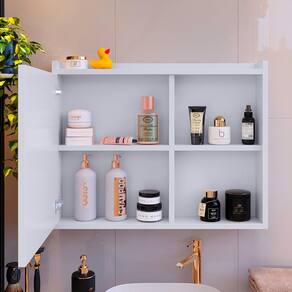 Espelheira Armário Banheiro Suspenso com Espelho 1 Porta Prateleira Organizadora Lavabo Luxo - Branco