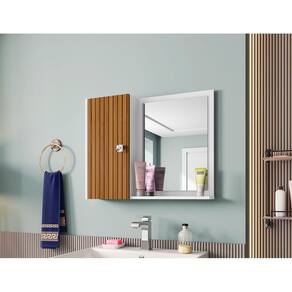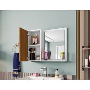 A Espelheira Gênova – Móveis Bechara, extremamente funcional, ela possui uma porta que possui uma prateleira interna criando 2 nichos com amplo espaço interno, além de possuir um amplo espelho fixado.