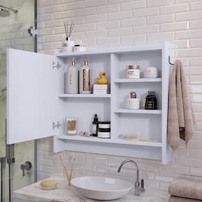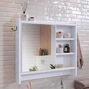 Espelheira Genova 1 Porta Espelho Armarinho Banheiro Suspenso Prateleira Organizadora - Lojas RPM