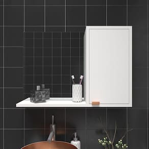 Aproveite para conferir as dimensões completas nas imagens do produto. Assim, você poderá verificar se a espelheira se adequa perfeitamente ao espaço disponível no seu banheiro.