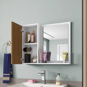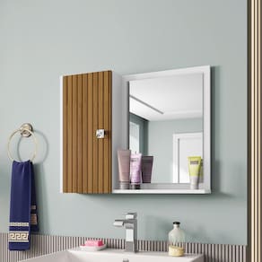 A Espelheira Gênova é tudo o que seu banheiro precisa! extremamente funcional ela possui uma porta que possui uma prateleira interna criando 2 nichos com amplo espaço interno, neles você poderá guardar todos os produtos de higiene pessoal que deseja, perfumes, shampoos dentre muito outros artigos de beleza que deseje armazenar na espelheira. Possui um amplo espelho fixado. Porta com pintura 3D efeito ripado. Acabamento: Pintura UV Acabamento da Porta: Pintura UV Acabamento da Prateleira: Pintura UV Altura: 47 cm Altura do Espelho: 40 cm Ambiente Principal: Banheiro Composição: 100% MDP Cr: Branco/Ripado Cr do Produto: Branco/Ripado Cr Flex: Não Cr Interna: Branco Escala de Brilho: Brilhante Espessura do Espelho: 3 mm Espessura do Material da Estrutura: 12 mm Fita Integrada: Sim Formato do Espelho: Retangular Informações Complementares: Elaborado em MDP com espessura de 12 mm, e acabamento com bordas de fita de papel decorativo mecanicamente aplicado por sistema hot melting e acabamento de superfície por pintura brilhante com verniz e secagem UV. Pintura 3D efeito ripado. Itens Inclusos: 1 Espelheira Gênova e Manual de Montagem Largura: 57,2 cm Largura do Espelho: 30 cm Linha ou Coleção: Tradicional Manual de Especificação Técnica: https://cdn2.madeiramadeira.com.br/atributo/m-veis-bechara/782459-778-002-01-espelheira-e-armario-sup-genova-folheto-tecnico-ed001-mar2021.pdf Manual de Montagem e Instalação: https://cdn2.madeiramadeira.com.br/atributo/m-veis-bechara/782458-778-espelheira-e-armario-sup-genova-manual-de-montagem-ed001-pp01-04.pdf Material da Porta: MDP Material da Prateleira: MDP Material do Puxador da Porta: ABS Material Principal: MDP Montagem Flex: Não Necessita Montagem: Não Origem do Produto: Nacional Peso: 5,04 kg Peso Máximo por Prateleira: 1 kg Possui Espelho: 01 Possui iluminação: Não Possui Portas: 01 Possui Prateleiras: 02 Possui Toalheiro: Não Possui Tomadas: Não Profundidade: 12 cm Recomendações de Uso, Manutenção e Limpeza: Recomenda-se limpar o produto com flanela ou pano macio seco, não utilizar produtos abrasivos, desengordurantes, álcool ou solvente. Mantê-lo em lugar livre de umidade e/ou exposição direta ao sol. Tipo de Dobradiça/Corrediça da Porta: Metálica Tipo de Fixação do Espelho: Fita Dupla Face Tipo de Porta: Bater Tipo de Puxador da Porta: Externo