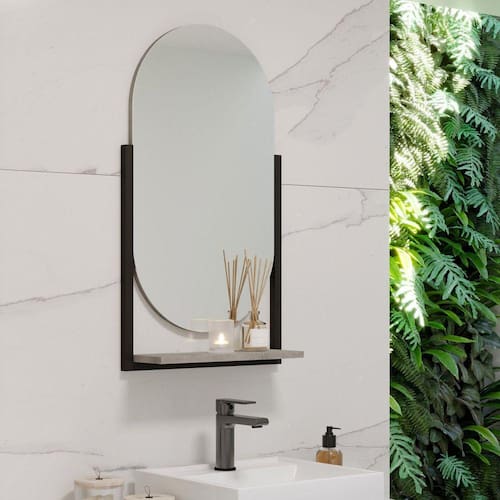 A espelheira Bogotá, para banheiro vai proporcionar muita praticidade e mostrar que você tem bom gosto, com prateleira, tudo fica muito bem organizado, com cada item em seu lugar, seu designer oval, da requinte e sofisticação, seu suporte em metalon, é a mais nova tendência do mercado.