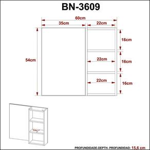 Quando falamos de banheiro pensamos em bem-estar. Pois o banheiro é onde a gente recarrega nossa energia vital, idealiza sonhos, e realiza toda a manutenção necessária para uma saúde física e mental. Com design prático, o móvel entrega ao ambiente toques de modernidade e elegância. Funcional, acondiciona produtos de higiene e beleza, porta escova, papel higiênico, toalhas, artigos de limpeza, entre tantos outros objetos pessoais. Espelheira Suspensa para Banheiro BN3609. Possui espelho e três nichos prateleiras. Estrutura em MDP e acabamento em BP.