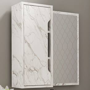 Espelheira Para Banheiro 60 cm 1 Porta BN3648 Marmore Branco Tecno Mobili