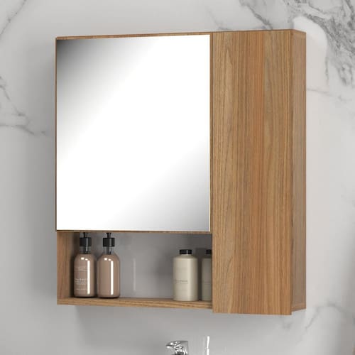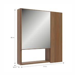 Essa espelheira se destaca por ser prática e moderna, é ideal para deixar seu banheiro bonito e versátil, mas mesmo tempo delicado e sútil. Criada com a qualidade do MDF de 1,5cm, possuí prateleiras internas e nicho na parte inferior que contribui armazenar seus itens ou até mesmo para decorar o espaço. Toda revestida com borda de PVC, um acabamento que entrega muita durabilidade e qualidade. Acabamento da Porta: PVC Acabamento da Prateleira: PVC Altura do Espelho: 57 cm Ambiente Principal: Banheiro codigo_ean: 7900288266118 Composição: MDF Cor: Noce Cor do Produto: Noce Escala de Brilho: Fosco Espessura do Espelho: 3 mm Espessura do Material da Estrutura: 15 mm Fita Integrada: Não Formato do Espelho: Quadrado Itens Inclusos: 1 Espelheira Largura do Espelho: 60 cm Linha ou Coleção: Rubi Manual de Montagem e Instalação: https://product-hub-prd.madeiramadeira.com.br/587227174/documents/d5235e28-0b0e-4c73-a1b9-37064caa27333272831566517604491101642.pdf Marca: Belizze Material da Porta: MDF Material da Prateleira: MDF Material Principal: MDF Necessita Montagem: Não Origem do Produto: Nacional Peso: 12,6 kg Peso Máximo por Prateleira: 10 kg Possui Espelho: 01 Possui iluminação: Não Possui Portas: 02 Possui Prateleiras: 02 Possui Toalheiro: Não Possui Tomadas: Não Recomendações de Uso, Manutenção e Limpeza: Retire o pó com uma flanela seca e depois utilize um pano macio umedecido com água. Não utilizar produtos químicos e abrasivos. Tipo de Dobradiça/Corrediça da Porta: Metálica Tipo de Fixação do Espelho: Fita Dupla Face Tipo de Porta: Abrir Tipo de Puxador da Porta: Não Possui