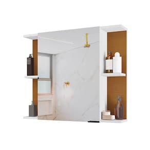AS IMAGENS SÃO MERAMENTE ILUSTRATIVAS E PODEM SOFRER VARIAÇÕES DE COR E PEQUENOS DETALHES DE ACORDO COM O SEU MONITOR, ILUMINAÇÃO DO AMBIENTE E ATÉ MESMO A SUA PERCEPÇÃO VISUAL.Espelheira para Banheiro ArmÃrio Suspenso Nilo Branco/nature
