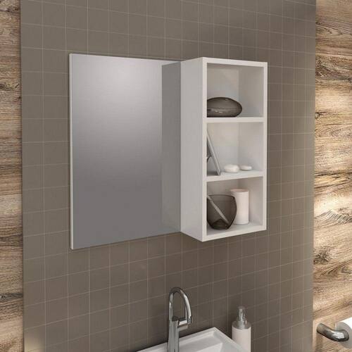 Características: Espelho 3 nichos prateleiras Estrutura em MDP Acabamento em BP