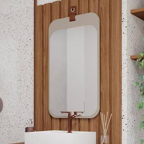 Espelheira Para Banheiro 100% Mdf C/ Alça De Couro Monet Mgm Móveis Cappuccino
