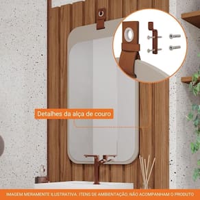 Eleve o charme e a funcionalidade do seu banheiro com a Espelheira da linha Monet da MGM Móveis, destacando-se pela sua alça de couro que adiciona um toque de elegância.