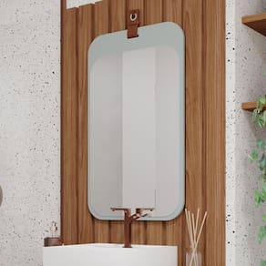 Eleve o charme e a funcionalidade do seu banheiro com a Espelheira da linha Monet da MGM Móveis, destacando-se pela sua alça de couro que adiciona um toque de elegância.