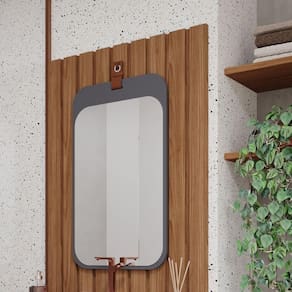 Eleve o charme e a funcionalidade do seu banheiro com a Espelheira da linha Monet da MGM Móveis, destacando-se pela sua alça de couro que adiciona um toque de elegância.