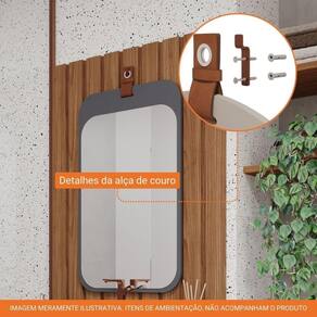 Espelheira Para Banheiro 100% Mdf C/ Alça De Couro Monet Mgm Móveis Titânio