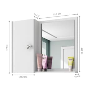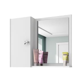 Além de ser produzida em MDP de 12mm. AEspelheira e Armário Superior possui 1 Porta com Dobradiças Metálicas e Puxador Cromado, 2 amplos Nichos, 1 Prateleira e 1 Espelho.