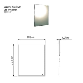 Produto desenvolvido em formato quadrado proporcionado ao seu ambiente modernidade e estilo, produzido com espelho de alta qualidade dos melhores fornecedores do brasil, todas as bordas lapidadas, com acabamento em bisotê, de fácil limpeza e instalação. Altura do Espelho: 72 cm Ambiente Principal: Banheiro codigo_ean: 7900288172426 Complexidade da Montagem: Baixa: pode ser montado por uma pessoa sozinha Composição: 100% Espelho Cor: Prata Cor do Produto: Prata Escala de Brilho: Semi-Brilho Espessura do Espelho: 4 mm Espessura do Material da Estrutura: 4 mm Formato do Espelho: Retangular Itens Inclusos: 1 Espelho e Ferragens Largura do Espelho: 60 cm Linha ou Coleção: Premium Manual de Montagem e Instalação: https://product-hub-prd.madeiramadeira.com.br/265235174/documents/9e010c4f-de96-4634-a7b3-7d1762c94d402965240582917486142049125.pdf Marca: Cris Metal Material Principal: Vidro Necessita Montagem: Sim Origem do Produto: Nacional Peso: 4,69 kg Possui Espelho: 01 Possui iluminação: Não Possui Portas: Não Possui Prateleiras: Não Possui Toalheiro: Não Possui Tomadas: Não Recomendações de Uso, Manutenção e Limpeza: Pano Umido Sistema de Montagem: Parafusos Tipo de Fixação do Espelho: Parafusos
