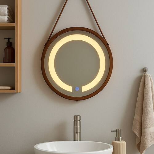 O Espelho Adnet Premium é uma peça sofisticada e moderna, ideal para adicionar um toque de elegância e funcionalidade a qualquer ambiente. Seu design refinado conta com uma alça em couro ecológico de alta qualidade, com acabamento de costura detalhado que valoriza a estética e garante resistência e durabilidade. A moldura em alumínio confere leveza e longa vida útil ao espelho, enquanto o formato redondo clássico e o sistema de fixação versátil permitem que ele se integre facilmente a diferentes estilos de decoração — do minimalista ao contemporâneo. Um dos grandes destaques do modelo é sua iluminação em LED de duas cores (branco quente e branco frio), com acionamento por touch dimerizável, que permite controlar facilmente a intensidade da luz conforme a necessidade do ambiente. Acompanha Lâmpada: 02 Altura do Espelho: 40 cm Ambiente Principal: Banheiro codigo_ean: 7900288278265 Coleção: Adnet Composição: 80% Espelho, 10%base de aluminio, 10% fita led Cor: Cobre/Caramelo Cor do Produto: Cobre/Caramelo Cor Interna: Branco Escala de Brilho: Fosco Espessura do Espelho: 3 mm Espessura do Material da Estrutura: 40 mm Formato do Espelho: Redondo Formato Espelheira: Redondo Informações Complementares: Espelho com iluminação direta e 2 cores de Led integrados Itens Inclusos: 1 Espelheira e Kit Instalação Largura do Espelho: 40 cm Linha ou Coleção: Adnet Manual de Montagem e Instalação: https://product-hub-prd.madeiramadeira.com.br/750802969/documents/1980bc76-a328-483e-9906-6b2f831d899d3290357648917612363944715.pdf Marca: Reduna Material Principal: Espelho Necessita Montagem: Não Origem do Produto: Nacional Peso: 1,6 kg Possui Espelho: 01 Possui iluminação: Sim Possui Portas: Não Possui Prateleiras: Não Possui Toalheiro: Não Possui Tomadas: Sim Recomendações de Uso, Manutenção e Limpeza: Limpar com pano macio e úmido, sem uso de produtos abrasivos Tipo de Fixação do Espelho: Parafusos Tipo de Lâmpada: Led Voltagem da Tomada: Bivolt