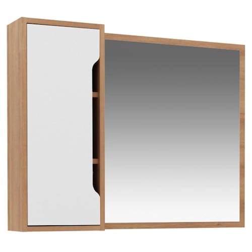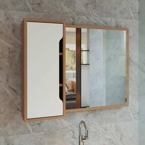 Espelheira Suspensa BN3645 para Banheiro 80x60cm com Porta Amêndoa Branco Tecnomobili