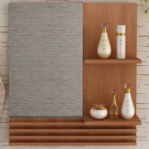 Produto: 01 Espelheira | Material: Madeira | Capacidade: 3 | Tipo de Instalação: Parafusar | Local de Fixação: Parede | Tonalidade: Multicolorido Cor: Amendoa