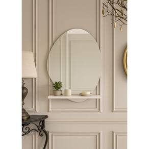 Espelho Decorativo Karina com Prateleira MDF Branco – Formato Orgânico