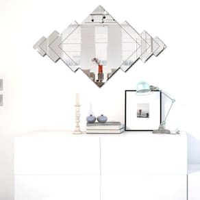 Espelho Abstrato 7 peças em Acrílico Decorativo CARACTERÍSTICAS: - Espessura: 2 mm TAMANHO: - Tamanho Montado Sugestão : 71 x 50 cm ACOMPANHA: 01 x Espelho Abstrato 7 peças em Acrílico Decorativo APLICAÇÃO: - Material mais resistente que o vidro além de ser mais leve também por isso os espelhos em Acrílico são indicados para o uso onde se preza pela segurança. ONDE APLICAR: - Casa: Parede de quarto, sala, varanda, etc... - Móveis em geral - Lojas: - Escritório - Escola - Creche CUIDADOS: - Nossos espelhos decorativos podem ser aplicados em qualquer superfície LISA, ideais para aplicação em paredes PLANAS, vidros, azulejos e onde mais sua imaginação mandar. - Utilize fitas dupla face para fixação dos espelhos. Kit já vai com as fitas. - Para limpeza utilizar flanela macia, mistura de água e um sabão suave. - O acrílico espelho possuí uma PELÍCULA de proteção no lado espelhado. - Essa PELÍCULA à primeira vista pode causar a impressão de riscado ou embaçado ás peças, mas é só remove-la após aplicar.