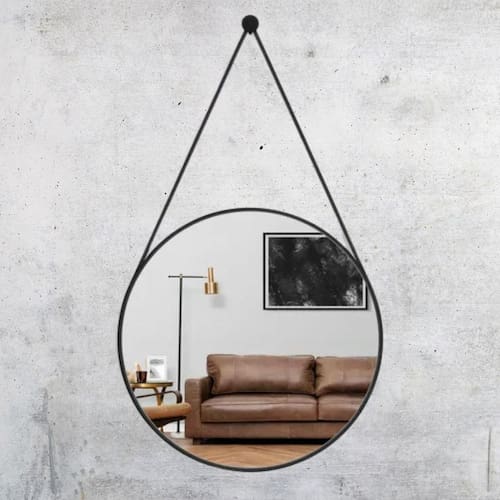 Características Modelo: decorativo Forma do espelho: redonda Cor da moldura: preto Estilo: minimalista Material da moldura: sintético Usos do espelho: decorativo