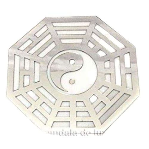 Espelho baguá yin yang acrílico espelhado prata sala 15cm tamanho: 15cm este baguá ou pakua de porta representa o céu anterior ou céu primordial, é utilizado para proteger o ambiente de energias negativas e manter a harmonia. O ba-guá do céu anterior traz os trigramas numa ordem harmônica, sendo que os trigramas opostos são espelhados. Isso retrata uma ordem e uma harmonia completa, inexistente em nosso atual universo. Por isso chama-se esse ba-guá de 'céu anterior', pois retrata as energias num estado anterior à criação de nosso universo. O ba-guá do céu anterior deve ser utilizado para proteção e decoração. Por ser representante de uma harmonia absoluta, ele invoca forças primordiais do universo e pode proteger o local onde é afixado. Esse é o princípio do ba-guá pendurado acima da porta principal: o espelho interno reflete energias que tentam entrar no imóvel, enquanto os trigramas em volta funcionam como um filtro energético, barrando apenas as energias nefastas sha chi . Medidas aproximadas do produto - altura: 15 cm - largura: 15 cm - peso: 800 g