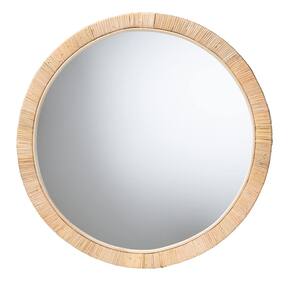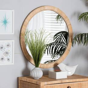 - Espelho de parede moderno com detalhes boêmios; silhueta redonda; montagem não necessária; garantia limitada de 30 dias; acabamento em marrom natural; cor marrom natural; dimensões do produto 47,2 “L x 47,2” P x 29,9 “H; material de construção em madeira de mogno; peso do produto (libras) 9,3 - Construído em madeira de mogno - Espelho central grande - Enfeites de vime natural - Montável na parede