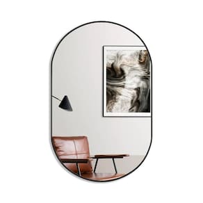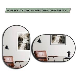 Espelho Brillare Decorativo Oval 80x50 Com Borda Em Couro + Suporte Cor:preto
