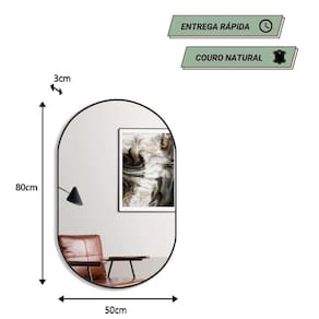 Funcional, resistente e esteticamente sofisticado, o espelho oval de 80x50 cm com borda em couro é a escolha ideal para quem deseja unir beleza, praticidade e estilo em um único produto, adicionando um toque de luxo e personalidade a qualquer ambiente.