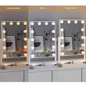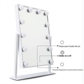 Espelho Camarim é perfeito para quem ama cuidar da beleza. Com luzes de LED integradas, é ideal para ser colocado sobre a penteadeira, bancada, banheiro, agregando estilo à decoração e iluminando suas produções.