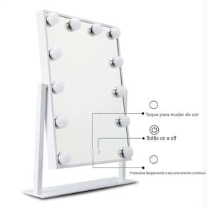Espelho Camarim é perfeito para quem ama cuidar da beleza. Com luzes de LED integradas, é ideal para ser colocado sobre a penteadeira, bancada, banheiro, agregando estilo à decoração e iluminando suas produções.