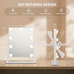 Permite que você veja todo o rosto de uma vez. O espelho é grande o suficiente para ser utilizado para maquiagem, penteado e até mesmo ao se vestir. A rotação livre de 360 graus pode ser fixada em qualquer posição, fornecendo uma perspectiva perfeita.