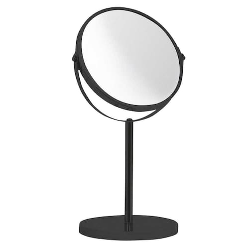 Espelho de Aumento Com Base Ônix O Espelho de Aumento Com Base Ônix é uma peça desenvolvida em aço inoxidável com base antiderrapante. Com movimento giratório em 360º, esse é um espelho versátil, ideal para quem busca facilidade na hora de cuidar da beleza e estética. Possui dupla face, ou seja, um de seus lados é normal e o outro conta com ampliação em até 5x. Exemplo perfeito de precisão e qualidade. Material: Aço inox e vidroMedidas: 4,3cm x 24,9cm x 16,9cm