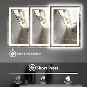 - Tecnologia anti-embaçamento – Sempre uma visão clara: Cansado de espelhos embaçados após um banho quente? O espelho de banheiro de LED possui tecnologia avançada anti-embaciamento que funciona de forma eficiente do centro para fora. Este recurso de eficiência energética garante que a área central permaneça cristalina enquanto desbota gradualmente em direção às bordas, para que você sempre tenha um reflexo claro exatamente onde precisa. Nota: Sem desligamento automático.