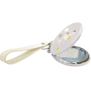Espelho perfeito para levar na bolsa ou na necessaire e tê-lo sempre à mão. Para retocar ou conferir a maquiagem, arrumar a sobrancelha, esse espelhinho é ótimo e funcional. Ele tem uma tampa protetora para evitar que algum objeto o danifique e para que fique sempre limpo para uso. É um item essencial e atemporal na bolsa de qualquer pessoa.