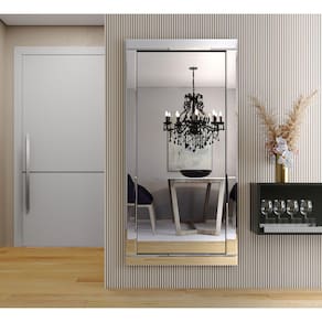 ESPELHO BELLATRIX DE CHÃO OU PAREDE LUAPA MÓVEIS Espelho Bellatrix de chão ou parede seja em qualquer ambiente de sua casa, escritório ou salão de beleza ele vai fazer a diferença e trazer toda sofisticação ao ambiente. Produto confeccionado 100% em chapa de MDF de 15 mm. O tampo e produzido na espessura de 30 mm em MDF com cordas de papel no processo de encabeçamento não sendo maciço, uma chapa de 15 mm com engrosso de 15 mm. O produto já vai com o espelho colado e embalado em uma estrutura de madeira com chapas de 3 mm evitando assim a possibilidade que quebrar o espelho no transporte.