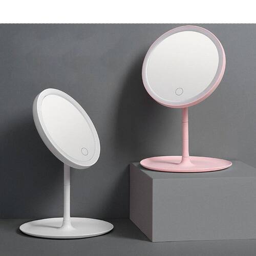 A luz e o brilho do espelho de maquiagem podem ser ajustados, o ângulo de rotação pode ser ajustado e o controle de toque é fácil de transportar e usar. Características: 1. Luz natural: a luz do espelho de maquiagem pode simular a luz natural, permitindo que você diga adeus aos defeitos de luz durante a maquiagem e evite a diferença de cor da maquiagem causada por mudanças ambientais ou diferentes luzes internas.2. Escurecimento infinito: controle de toque inteligente, pressione e segure o botão para ajustar o brilho da luz, para atender às necessidades de diferentes tipos de maquiagem e cuidados com a pele. Três tipos de cores claras: simula três tipos de luz, a luz branca pode ser usada com maquiagem, a luz quente/a luz branca quente tem um tom quente e pode ser usada como luz noturna. Superfície do espelho: A superfície do espelho não tem cor moldada, sem distorção, é mais clara, verdadeira e mais brilhante. Não libera substâncias nocivas às pessoas.5. Bandeja de armazenamento: Há uma bandeja de armazenamento na parte inferior, que é mais estável e não treme, e armazena cosméticos de forma inteligente. Especificações:\ nTamanho: Base: 8,5 cm, altura: 28,5 cm, espelho: 7,5 cm\ nPotência da bateria: 350\ nBateria: bateria de lítio\ nMaterial: ABS + espelho\ nFonte de luz: LED Carga: luz USB: luz branca, luz natural, luz quente\ nCor variada: branco, preto ou rosa.