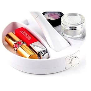 Este espelho de maquiagem é iluminado com Leds, sendo muito prático, basta pressionar um botão na parte inferior do suporte, que ligará as luzes LED que são super brilhantes em ambos os lados para iluminação perfeita da imagem.
