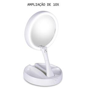 Também possui os dois lados funcionais (frente e verso), sendo de um lado com ampliação de 1x para maquiagem geral e do outro lado apresenta grande ampliação 10x para realização de trabalhos detalhados.