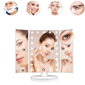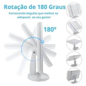 Espelho de Maquiagem Dobrável Triplo com Iluminação LED - Branca Espelho de Maquiagem Dobrável Triplo com Iluminação LED - O Acessório Perfeito para Sua Beleza Design moderno e elegante que traz a experiência de um camarim para sua casa Três painéis articulados: espelho central com visão normal e laterais com ampliações de 2x e 3x Iluminação LED de alta qualidade ajustável com botão sensível ao toque Estrutura rotacionável de até 180 para o ângulo mais confortável durante o uso Formato dobrável que facilita o armazenamento e o transporte, ideal para viagens Fabricado em plástico ABS resistente, garantindo durabilidade e leveza Conexão via cabo USB incluso para maior praticidade O Espelho de Maquiagem Dobrável Triplo com Iluminação LED é a solução perfeita para quem busca precisão na maquiagem, cuidados com a pele ou depilação. Tenha sempre a iluminação ideal e uma visão detalhada do seu rosto Especificações: Composição: Plástico ABS , Vidro e componentes Eletrônicos. Dimensões: Altura: 31,5cm x Largura: 13,5cm x Comprimento: 18,5cm Dimensão do espelho aberto: Altura: 26cm x Comprimento: 40cm Peso Aprox.: 912g Conteúdo: 01 Espelho de Maquiagem Dobrável Triplo com Iluminação LED - Branca Marca: Não Informado
