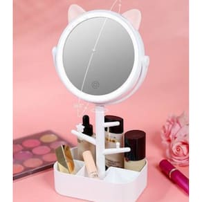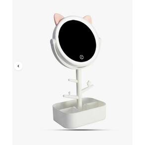 - Espelho de Mesa- Com LED- Com orelhas de gato removível- 3 Níveis de LED- Recarregável