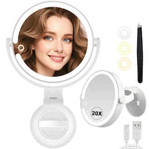 - Ampliação de 20x e 1x espelho dupla face HD: o espelho de alta definição com iluminação tem configurações de ampliação de 20X e 1X. A ampliação de 20X ajuda você a aplicar maquiagem com maior precisão, seja aplicando rímel ou aparando suas sobrancelhas. Para pessoas com pouca visão, permite que você examine de perto áreas específicas do seu rosto. Também é ótimo para rotinas de cuidados com a pele. Observe que a ampliação de 20X é muito forte e você precisa manter seu rosto dentro de 10 cm do espelho para uma visão clara e sem distorções.