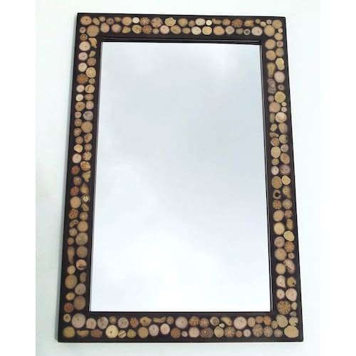 Espelho,envernizada com detalhes em marchetaria natural. Produto feito com madeira. Dimensões: 40x60 AL 2cm