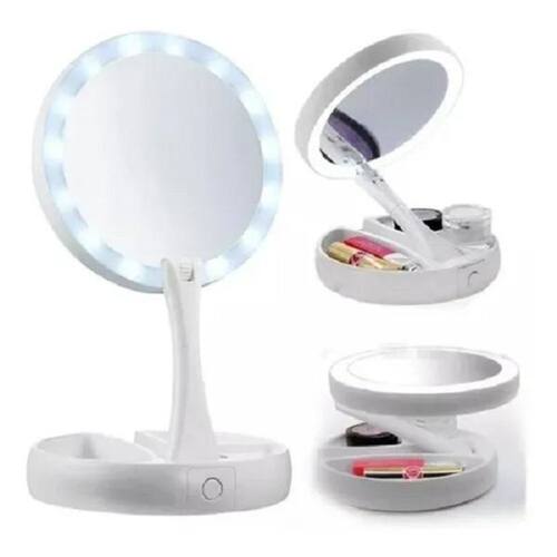 Características: - Oferece uma poderosa ampliação, um super zoom de 10x - Possui um espaço interno onde é possível guardar seus acessórios deixando o ambiente organizado. - Leve e compacto podendo ser levado para qualquer lugar. Deixando-a sempre preparada. - Peso aproximado de 360 gramas - Altura de 28,5 centímetros espelho aberto, em pé - Cor disponível: Branco -alimentação: corrente elétrica, companha o cabo de alimentação usb , e/ou pilhas AA são necessárias 4 pilhas As pilhas não são inclusas.